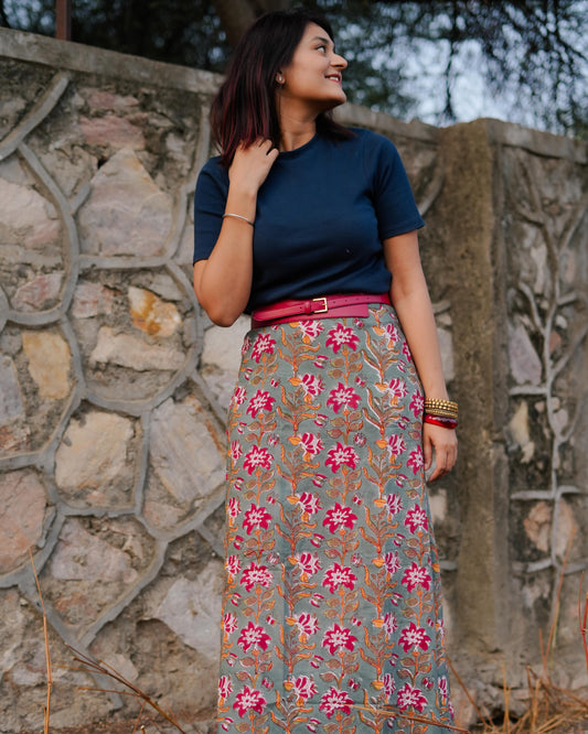 Regular price Rs.1,799Sale price Rs.1,799 Regular priceUnit price / perRs.2,499Women Hand Block Printed Skirt With Slit