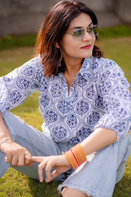 Regular price Rs.1,416Sale price Rs.1,416 Regular priceUnit price / perRs.2,499Hand Block Printed Collared Top