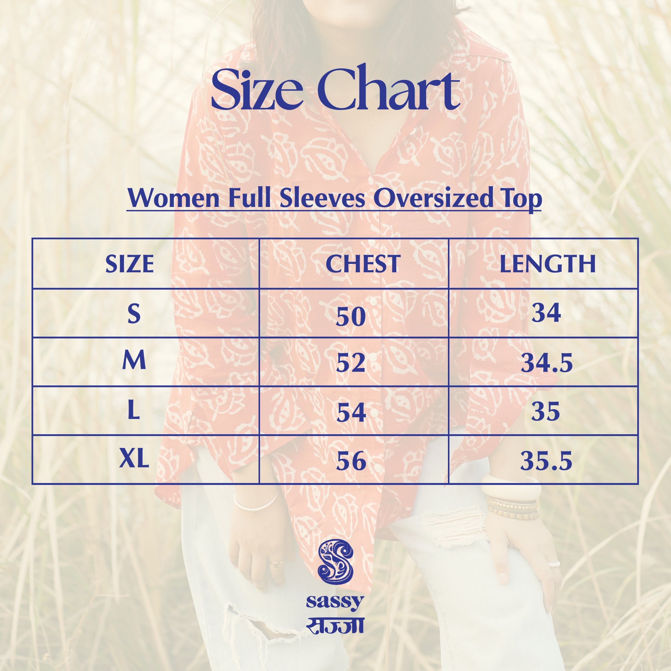Women Hand Block Printed Full Sleeves Oversize Shirt